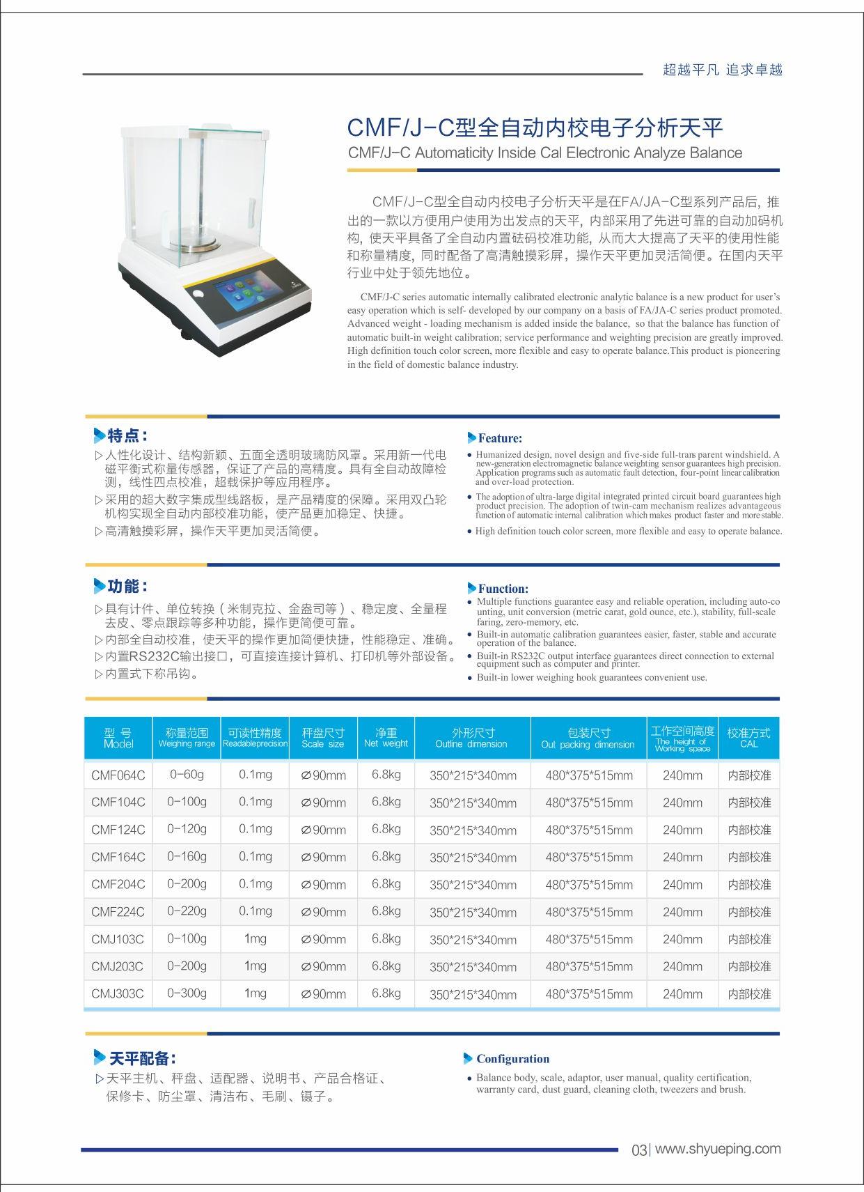 ● ● 人性化设计、结构新颖、五面全透明玻璃防风罩。采用新一代电磁平衡式称量传感器,保证了产品的高精度。具有全自动故障检测,线性四点校准,超载保护等应用程序。